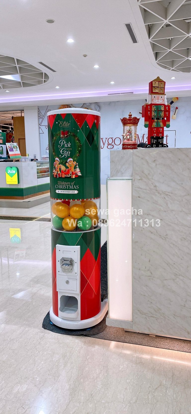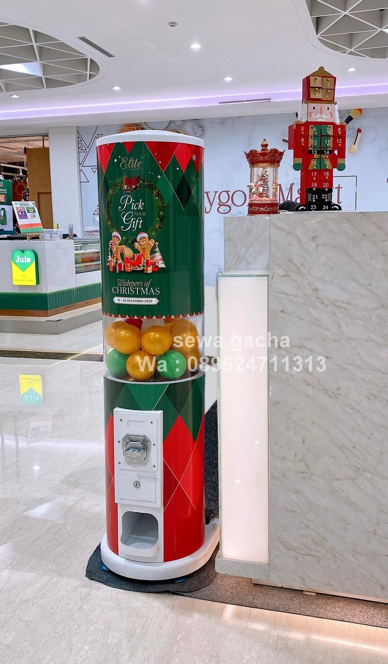 Dalam momen spesial seperti perayaan Natal, khususnya untuk acara eksklusif Pick Your Gift bagi Elite Member di Plaza Senayan, diperlukan elemen aktivasi yang tidak hanya menarik perhatian, tetapi juga mampu menciptakan pengalaman yang hangat dan memorable. Di tengah suasana mall yang ramai dan penuh dekorasi Natal, kehadiran mesin gacha menjadi solusi interaktif yang menyatukan unsur kejutan, keseruan, dan eksklusivitas dalam satu titik aktivitas.