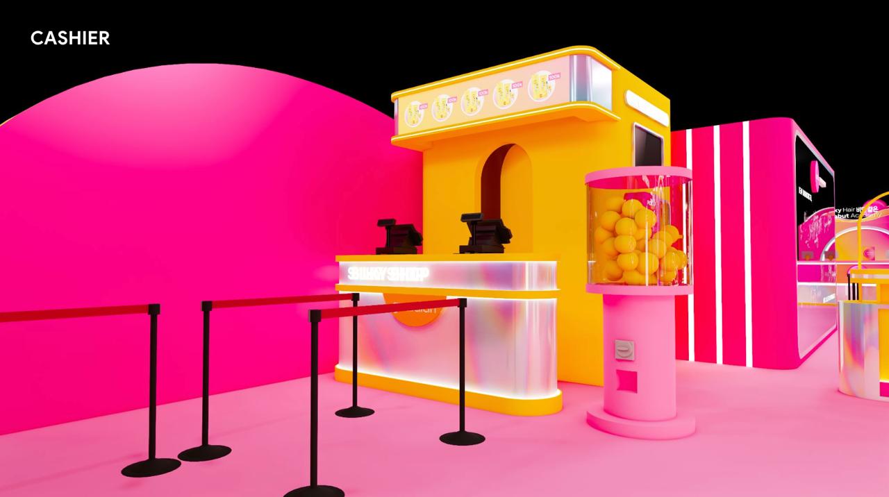 Booth Sunsilk x BABYMONSTER tampil dengan perpaduan warna kuning cerah khas Sunsilk dan sentuhan pink yang playful, mencerminkan energi youthful dan dinamis.