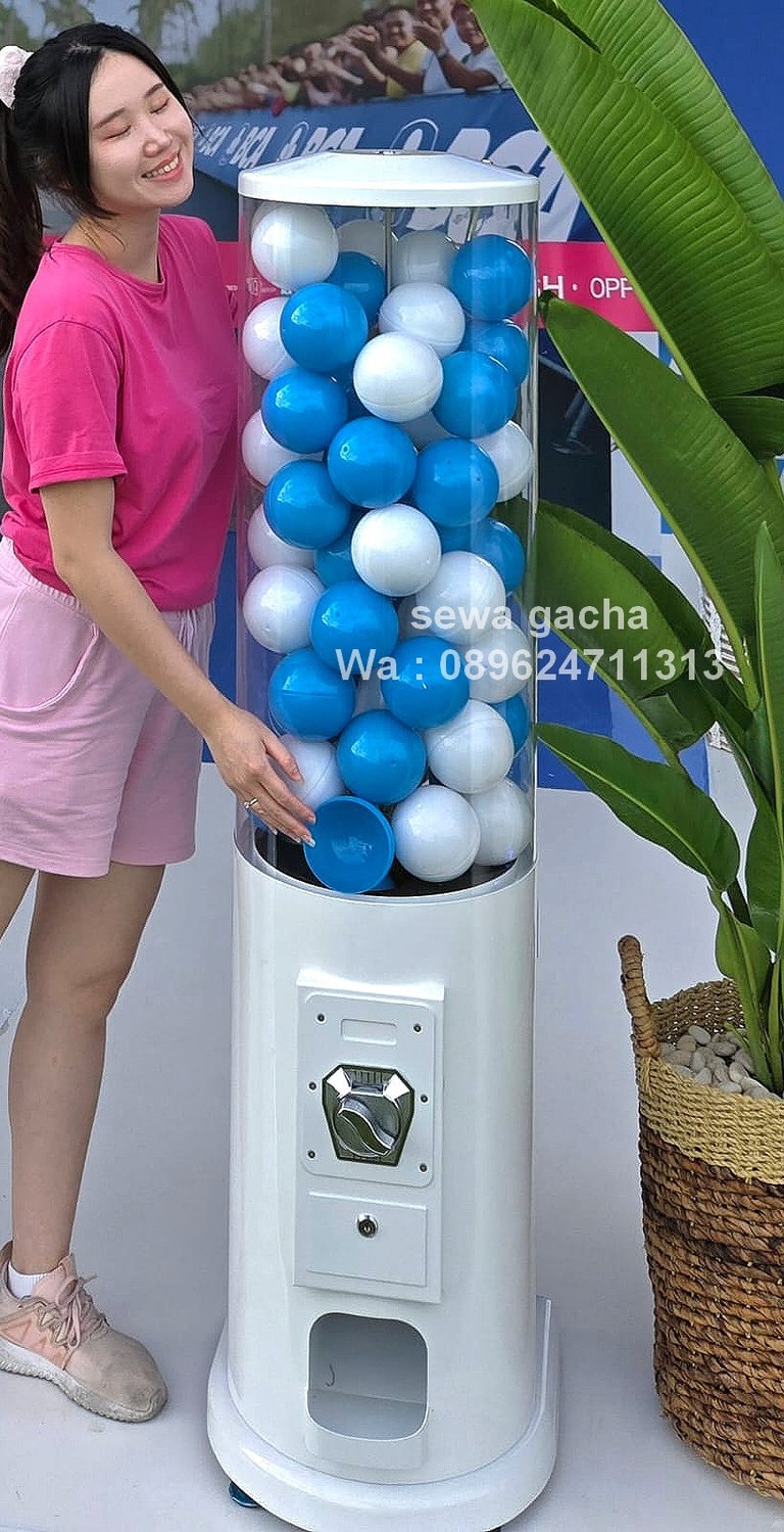 Dengan ukuran yang lebih ringkas dibandingkan tipe jumbo, Mesin Gacha Small Pupeace sangat cocok ditempatkan di area booth yang dinamis seperti event lari. Ukurannya yang compact membuatnya mudah diakses oleh pengunjung, namun tetap cukup mencolok untuk menarik perhatian.