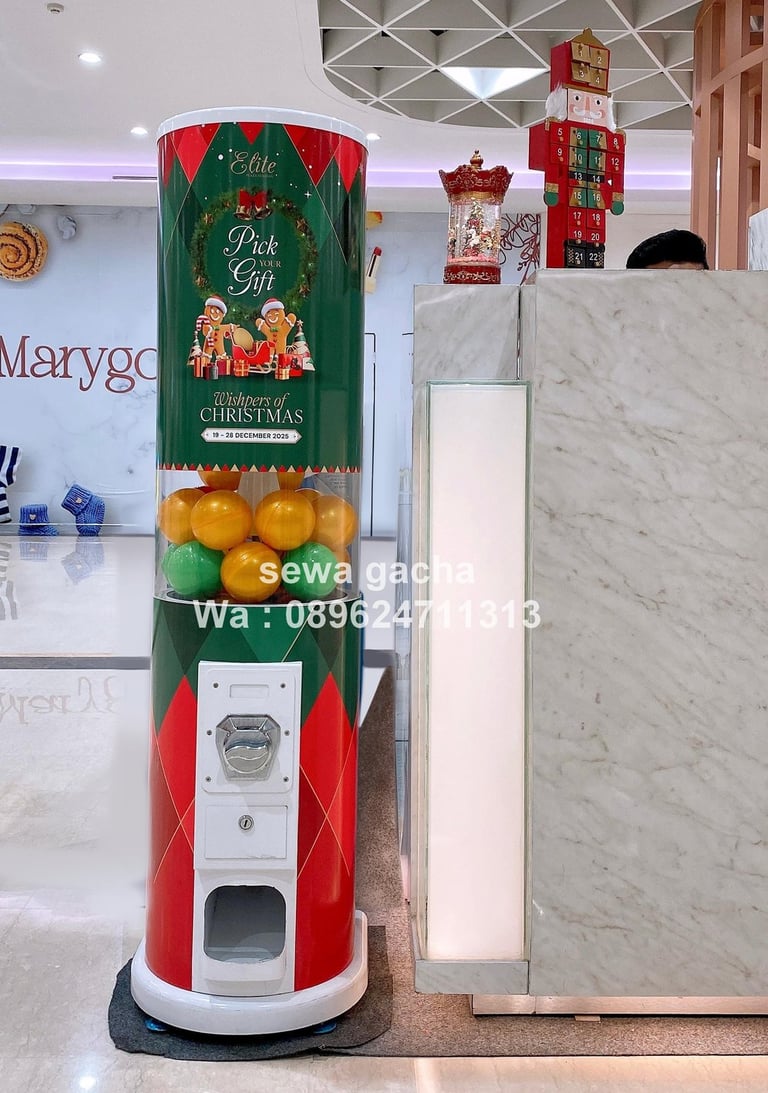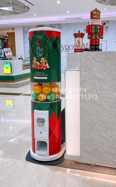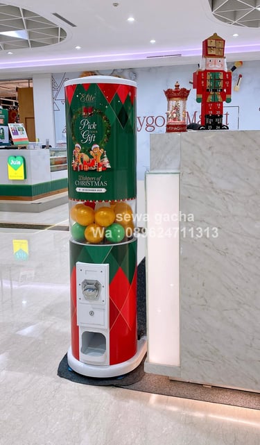 Dalam momen spesial seperti perayaan Natal, khususnya untuk acara eksklusif Pick Your Gift bagi Elite Member di Plaza Senayan, diperlukan elemen aktivasi yang tidak hanya menarik perhatian, tetapi juga mampu menciptakan pengalaman yang hangat dan memorable. Di tengah suasana mall yang ramai dan penuh dekorasi Natal, kehadiran mesin gacha menjadi solusi interaktif yang menyatukan unsur kejutan, keseruan, dan eksklusivitas dalam satu titik aktivitas.